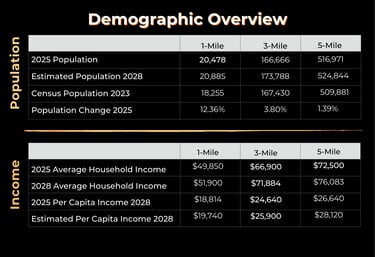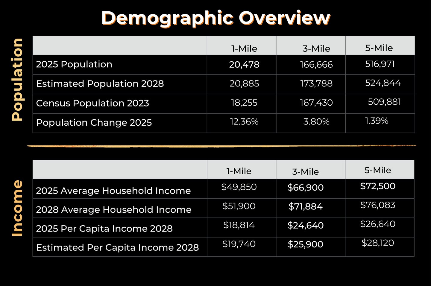 The community is dense and diverse, serving over 510,000 residents within a 5-mile radius, with an average household income of $72,500. The property benefits from a daytime population of over 200,000, driven by schools, parks, and community centers nearby.